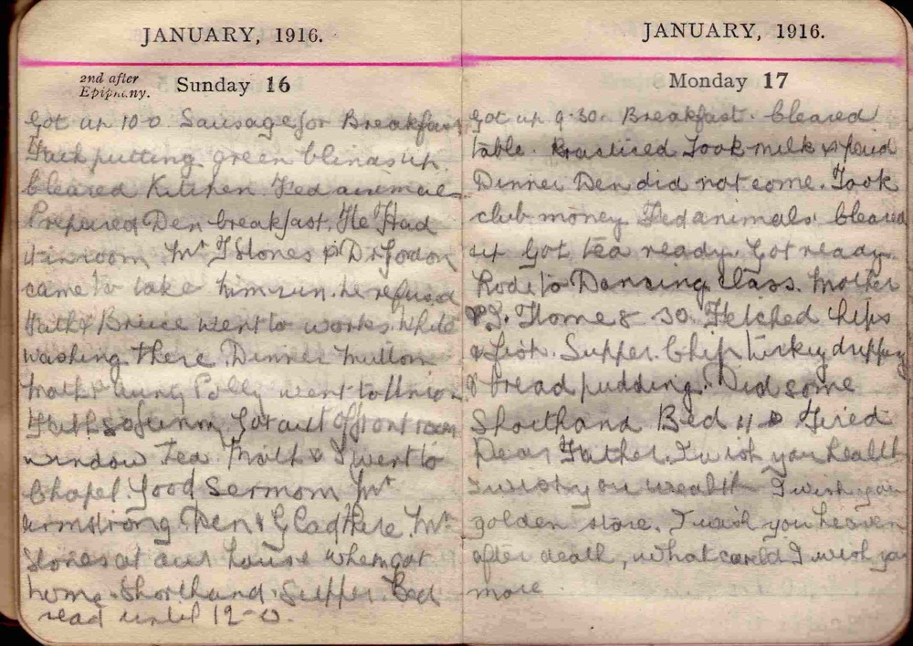 Doris Hogan 1916 Diary: January 16th and 17th